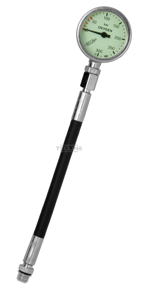 Finimeter, 52 mm, Nickel, für Sauerstoff, 300 bar, mit 20 cm HD-Schlauch (Standard)