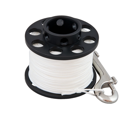 Das Spool verfügt auf der einen Seite über eine Verbreiterung, in die der Doppelender eingehakt werden kann, um das Aufwickeln der Leine zu vereinfachen.