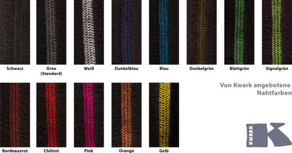 Zu diesen Anpassungen zählen u. a. eine vom Standard abweichende Nahtfarbe, Abweichende Maße oder Maßanfertigungen, Durchführungsöffnungen und andere Änderungen des Standardartikels.
